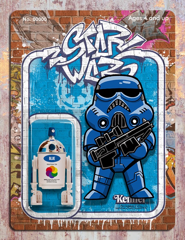 This project started when I came across an image of a carded "R2-D2" figure done up to look like a spray can. The card itself was blank initially, until various street artists put there designs on them. I thought they look pretty cool and gave me an idea on what to do with the various "Star Wars" doodles I have done over the years.